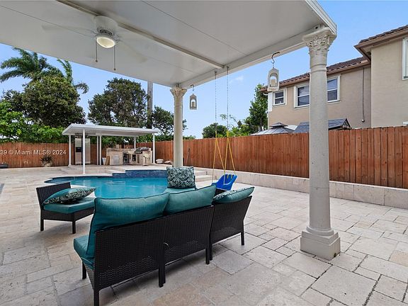 Stunning and modern corner house in beautiful gated community Santori at Viscaya. Kitchen has quartz counter tops and top of the line Stainless Steel appliances. Master Bathroom updated and other two bathrooms have new floors and vanities. modern ceramic floors in fist floor and Water Resistant laminate floor in the second floor. recently painted Pool deck and patio has been updated with traveltine paver, outside cabana kitchen, accordion shutters. Plenty of parkings, Easy to show, perfect for a big family or investor.