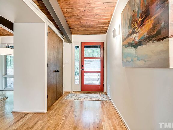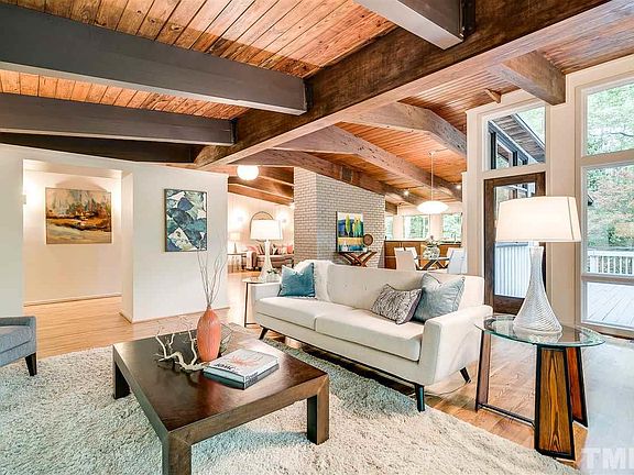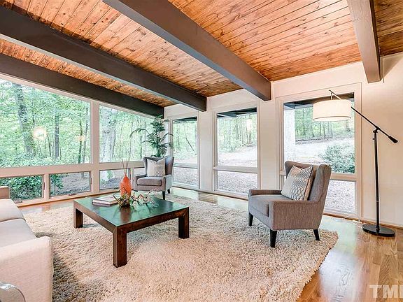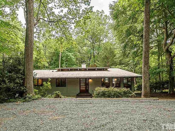 Strategically positioned to offer a perfect balance of seclusion & accessibility w/ ECH schools. Mins to down town Durham, Chapel Hill, UNC, I-40, walking distance to Duke Forest trailhead. Local architect, Bill Waddell added a modern flare to this 1971 classic Deck House and designed the addition of a stunning family rm showcasing the surrounding 4.7 acres. The open plan includes a main floor master suite, family rms up & down, add'l space well suite for a fitness rm, & 80+ ft of surrounding deck.