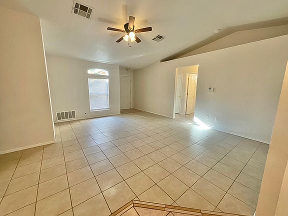 Nice neighborhood. Quiet and safe. Very Clean. Tile flooring throughout. Stainless Steel Appliances New Appliances - Refrigerator, Stove, Dishwasher. 2 car garage. W/D Hookups. Large Master with walk-in closet. Linen Closet. Coat Closet. Three bedroom. Two full Bath. Great Lighting.