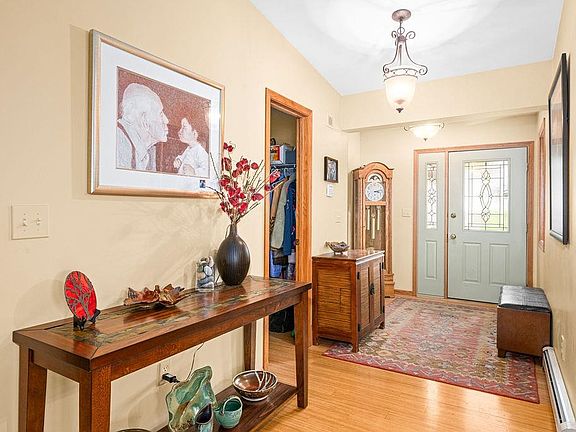 What a beautiful one owner Ranch style home in Lakeside! This home has been meticulously cared for and some beautiful updates have also taken place! Once inside you will see the Cherry wood kitchen with lovely granite counters and gorgeous center island prefect for dining and entertaining! The living room has a pretty tiled gas fireplace to cozy up the room and the dining room has a French door that leads to a large wrap deck! The bamboo flooring is fantastic, and flows nicely through the main floor. There is a mudroom with laundry off the garage and a large separate coat closet as well! A half bath just off the kitchen area is handy and the primary bedroom has a newly remodeled bath with heated tile floor, cabinets from Maureen’s Custom cabinets and really nice finishes! A large walk in closet finishes out that a room and another large bedroom on the main floor as well. The lower level has a spacious family room that is a walk out to a nice patio under the deck, a private back yard with a shed and loads of bushes and ferns. Two more spacious bedrooms on this level share a full sized bath with tub and down the hall is a large sauna room with big tiled shower area inside! The mechanical room has a new Navien Boiler, a Venmar air exchanger, central air unit and storage area. The bonus here is the HUGE storage room! Tons of space for everything! The double garage and asphalt drive and great, external vinyl siding and the roof is only a couple years old! Come see this beautiful home on a quiet dead end street backing up to Hawks Ridge!