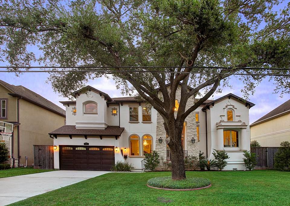 Stunning stucco+stone home designed by Greg Denault, on large Bellaire lot with impressive outdoor living + yard space! Completed in 2013, this home offers an exceptional open floorplan with soaring 2-story foyer and great room, chef s kitchen and Thermador appliances, 12 granite island, study/formal, AND master + study/2nd ensuite bedroom down, as well as ample storage and 5 hardwoods throughout. Sweeping staircase leads to 3 bedrooms, game room + wet bar, upstairs study and more!