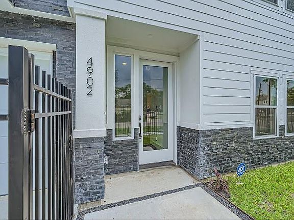 Fully furnished, stylish and affordable city living offering a 2-story with 3 bedrooms, 2.5 baths, 2-car garage and private driveway. Main living, dining and kitchen located on the 2nd floor along with the primary suite and large utility room. Amazing upgrades including luxury vinyl plank flooring, quartz countertops, GE/Whirlpool stainless steel appliances, beverage refrigerator and 12 foot ceilings within the second floor. The kitchen showcases a gorgeous quartz waterfall island, ceramic apron farmhouse sink, and large windows full of natural light. The primary suite offers a walk-in closet, stand alone soaking tub and a huge shower with a bench. 2 sizable guest rooms with 9 foot ceilings and a shared bathroom located on the 1st floor; ideal for roommate situations! 8 foot garage doors and driveway can park up to 4 vehicles! Close proximity to I-10, East Downtown destinations, and the upcoming East River Project.