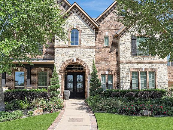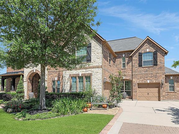 Architectural dream home. 5 bedrooms. Former M/I model. Owners and guest suites on first floor, 3 bedrooms, game-room, wet bar, theater and TX Basement up. Three car garages. Grand entry leads your guests to a dramatic family room, w/ high ceilings, museum quality lighting, floor to ceiling stone wall surrounding a built-in, gas log, fireplace. Hand scraped wood flooring for the entire 1st floor. Huge formal dining room. Chefs kitchen with GE Monogram ss appliances gas range, dbl ovens, warming-tray, and pot filler. Resort backyard w/ lush landscaping, accent lighting, outdoor kitchen, designer Pebbletec® pool/spa travertine decking. Shaded Pergola with carefree Trex® decking. Spacious owners suite is bathed with natural sunlight and views of the backyard oasis. Designer Primary bathroom features herringbone patterned tile floors, floor to ceiling tiles in the walk-in shower, dual heads and wands and double vanities.