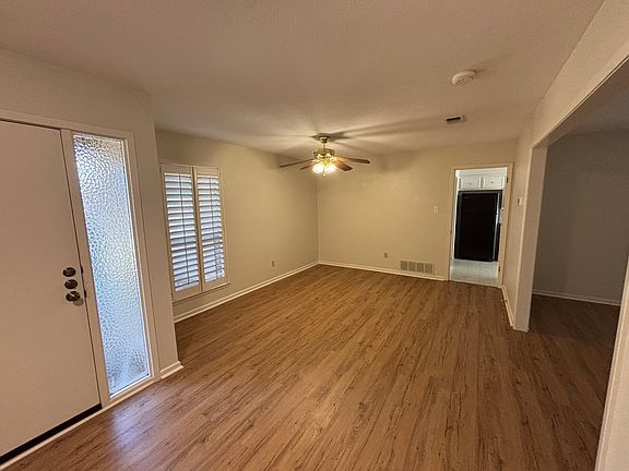 Excellent full duplex features 3-bedrooms, 2-full baths, attached rear-entry 2-car garage. Private courtyard entry, covered patio, private green space, mature trees. Abundant storage, new vinyl plank floors, laminate floors, wet bar, plantation shutters and blinds. Fridge stays. YARD CARE included. Pets allowed on case-by-case basis. Quiet neighborhood, corner location convenient to I-20, Chisholm Trail Parkway, SW Medical area & restaurants.