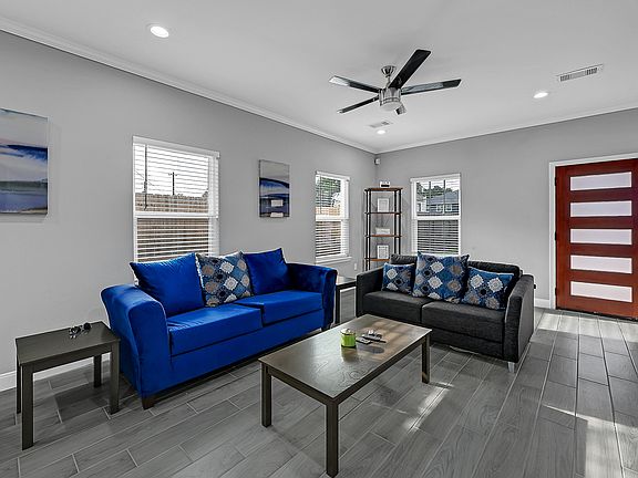 Newly constructed 2 story duplex unit with brick facade. Both bedrooms are upstairs and feature en-suite bathrooms. Stainless steel appliance package, full sized washer and dryer, quartz countertops, fully furnished unit. Primary bedroom features a private balcony. The backyard space is private, gated, and features a large covered patio areas for enjoying the outdoors. The property comes equipped with the camera monitoring system, RING doorbell, and wrought iron private entry solar powered gate. Tenant pays for electricity, water, and internet. Owner will pay for regular landscaping services.