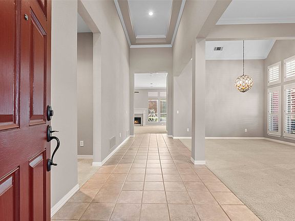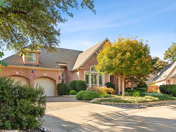 Nestled on a quiet cul-de-sac in the sought-after Stonebridge Ranch Community, this beautifully maintained home offers a perfect blend of comfort, space, and style. Surrounded by mature landscaping and located near the community’s prestigious golf courses, this property invites you to relax and enjoy a serene lifestyle. Step inside to a welcoming entry flanked by formal living and dining rooms, ideal for entertaining. The home features two inviting family rooms, each with its own cozy fireplace and built-in shelving. The open floorplan flows effortlessly into the spacious kitchen, complete with an eat-in dining area for casual meals, a large island, pantry, and ample counter and cabinet space—perfect for any home chef. All bedrooms are appointed with plush carpet, while the expansive master suite provides a true retreat featuring dual sinks, a large soaking tub, separate shower, and a custom walk-in closet with full-length sliding mirrors. Additional highlights include a large utility room with space for an extra refrigerator or freezer, ideal for added storage and convenience. Step outside to a beautifully landscaped backyard with a pergola, garden area, and rock paver walkway. The yard offers plenty of shade and privacy, creating an inviting outdoor oasis for relaxation or gatherings.