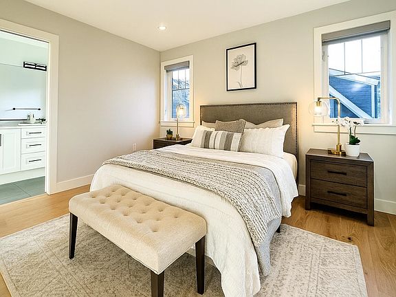 Bay windowsDouble garageWide-plank hardwood floorsNeutral tonesRecessed lightingGourmet kitchenWhite shaker cabinets
