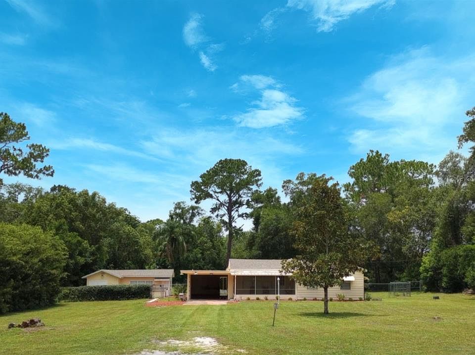 You won't find one like this very often! Over an acre of land zoned A-1. Bring the horse, chickens and livestock. Sitting back off the road, this pristinely kept property has so much to offer. Main house is sided with aluminum siding that requires nearly no maintenance. It has 3 bedrooms and 1 bath, attached utility/storage room with full cabana bath and direct access to the covered back patio looking onto a firepit. Meticulously maintained and built in 1955 this home has so much charm. Beautiful original wood floors in most of the house. Tile floors in the kitchen, family room and bath. Kitchen has wood cabinets with crown molding and wine rack and a new touchless Moen faucet in kitchen sink. There is a jetted tub in the bathroom. 2" blinds throughout. The plaster walls keep the house cool in the summer and warm in the winter and the free standing fireplace in the family room offers cozy ambiance. Lots of windows throughout the house provide an abundance of light. On the front of the house is a large screened porch with tiled floor. The back yard is huge with lots of room to roam, make a garden, have your livestock, etc. In addition, there is a 1 bedroom, 1 bath guest cottage that can be the perfect MIL suite or you could rent out a long term rental. The cottage comes fully furnished and equipped. Turn key and ready to go. Includes it's own washer and dryer as well. On the back of the cottage is a 8x8 storage room. The cottage has it's own septic separate from the main house. There are 2 split unit AC, 1 less than a year old and the other is approx. 5 yrs. The roof on the house and cottage are 2022. AC in the main house is 2021. Just when you think it can't get any better it does! Located in the back yard is a 12x42 workshop with 10' ceilings, electricity and a metal roof. In addition it has a covered open space that is also 12x42. Inside is pre-plumbed for a bathroom and the space could be developed into a small apartment if desired. Perfect mancave! Just beyond the workshop is a RV hook-up area with electrical hookup and a small septic (this septic is neither warranted or guaranteed as it has never been fully located or used). The yard has a firepit as well. If having livestock is your heart's desire then you are in luck! There is a 10x20 pole barn with a new metal roof. And if Fido is your priority then he's in luck too. There is a concrete dog house with a shingled roof. Fido will be the king of the neighborhood. The yard is kept tailored and neat and is very private fully fenced and surrounded by landscaping and trees. Several security lights light up the entire area. There are pear, avocado, mango, Japanese plum and tamarind trees. For access you have double driveways, one on each side of the yard and the cottage has it's own private parking spot and entrance. The main house has a 14x28 carport that can be shut off for privacy. Less than a mile to Rock Springs, close to Orange Trail Trail Head, 429 and loads of shopping and restaurants yet you have out in the country feel. All of this and no HOA, water or sewer bill! What more could you ask for? If this sounds like exactly what you've been dreaming of, call today for your private tour of the house and grounds. These type properties don't come along very often and you don't want to miss out!