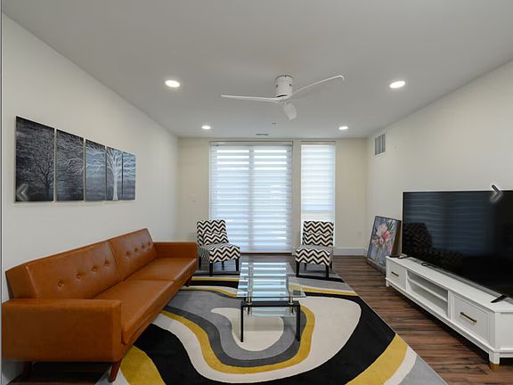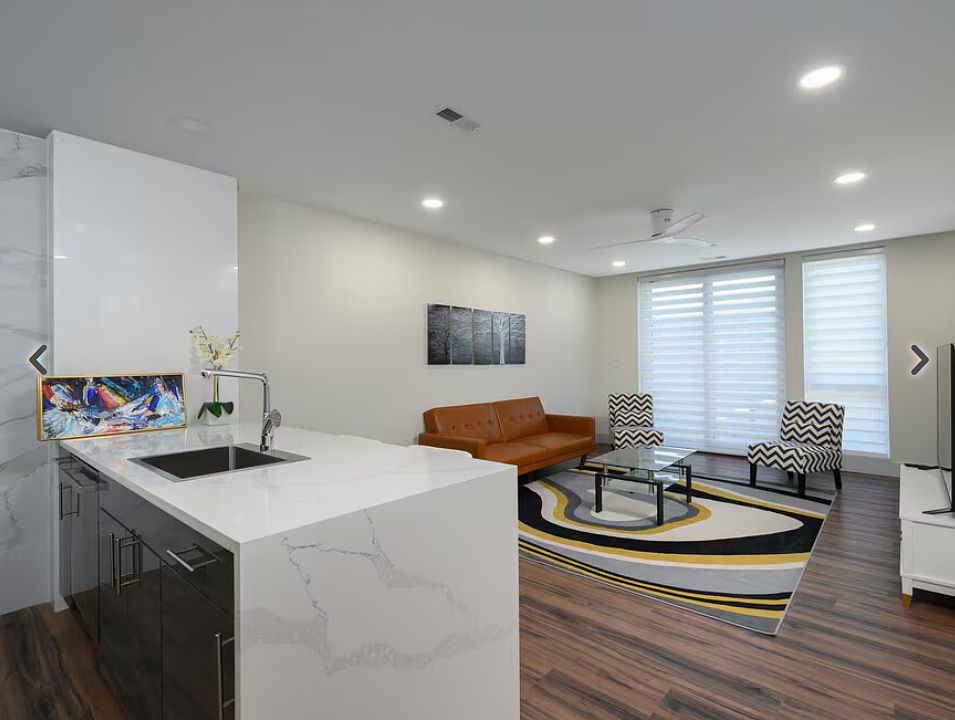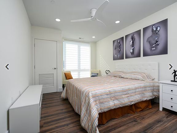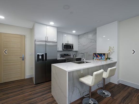 Experience next level urban living in this impeccably designed residence, where every finish speaks to modern luxury. The showstopping chef's kitchen is a masterpiece of function and form, boasting contrasting two tone cabinetry, pristine quartz countertops with a stunning waterfall edge island, and a full suite of stainless steel appliances. Natural light pours over the rich wood style floors in the open living area, making it perfect for entertaining, while the bathroom offers a spa like sanctuary entirely enveloped in elegant marble style tile. This isn't just an apartment; it's a stylish, turnkey retreat where sophistication meets comfort in a vibrant setting.