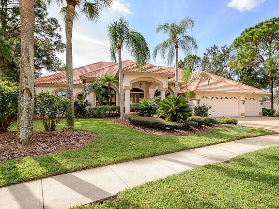 Golfers grandeur! This residence sits majestically upon the 9th hole of the East Lake Woodlands north course in highly sought-after Turtle Creek. Sweeping golf course & pond views are enjoyed from almost every room! Impressive from the curb, this home flows well as you meander through the spacious and open floor plan boasting 14' ceilings, crown molding and marble floors. The Master Suite is king sized with a wood burning fireplace and sitting area. Master bath is updated with wood cabinets and granite. Living and dining rms are spacious and freshly painted in a modern greige palate. Entertaining is a breeze with the kitchen overlooking the family rm, breakfast nook and two wet bars. In the kitchen you will notice wood cabinets, corian and granite counters as well as new stainless appliances to include double in-wall oven and microwave, French door refrigerator and dishwasher. BRs 2-3 share a Jack & Jill bath. BR 4 at the rear of the home with water and golf course views has access to the pool & lanai. A dedicated study is found at the front of the home providing a quiet work space. The screen enclosed pool has a heated spa and the sprawling lanai offers plenty of room for relaxing while taking in the awesome view. Conveniences of this home include two A/C systems (2016, 2017), two water heaters (one new 11/2018), Security system and 3M film on all windows. East Lake Woodlands is a gated country club community offering two championship 18 hole golf courses, 17 tennis courts and 2 heated pools!