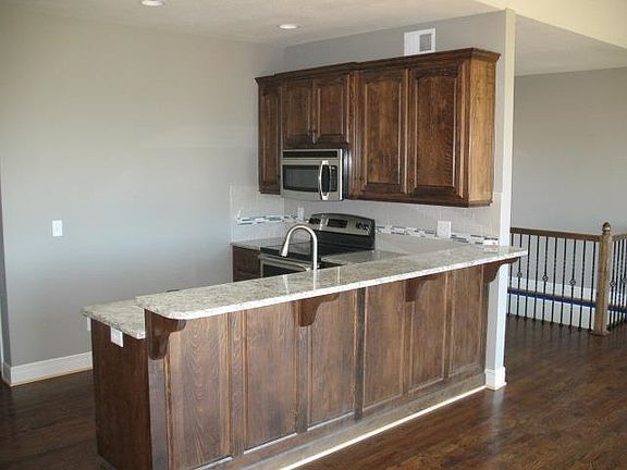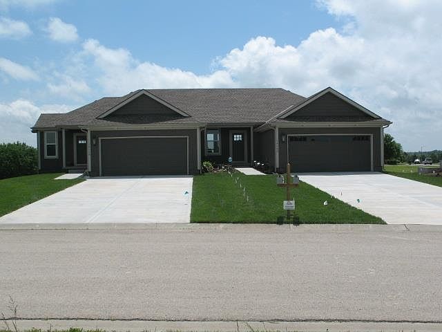 Wow, what a view. Last lot over looking Falcon Lakes golf course. 3 bdrm. 2-1/2 bath ranch walkout town homes. Open floor plan, lots of hardwood, flooring, covered rear deck, additional family room down stairs, lawn maint. provided through the HOA. Homes is close to the Legends with easy access to I-70 and Leavenworth.