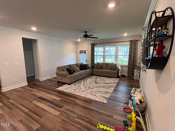 Stunning Luxury Corner-Lot Home Filled with Natural Light, This single-family home offers 5 spacious bedrooms and 3 full bathrooms, including a first-floor guest suite with its own bath. Enjoy seamless indoor-outdoor living with a screened-in porch perfect for relaxing or entertaining. The main level features luxury vinyl plank flooring, an open-concept living and dining area, and a modern kitchen equipped with stainless steel appliances and elegant quartz countertops. Upstairs, the expansive master suite includes a massive walk-in closet and a spa-like bathroom with a dual vanity and tiled walk-in shower. You'll also find three generously sized secondary bedrooms all with ceiling fans another full bath, a large loft space, and a convenient laundry room. Additional highlights include a two-car garage, Ring doorbell with security system, and a tankless water heater. Ideally located near shopping, dining, and with easy access to I-540, this home combines comfort, style, and convenience.
