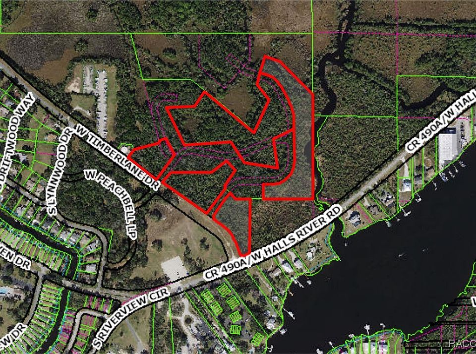 Would you like to own 18+ acres near the Homosassa River? Here is your opportunity to own one of the few remaining acreage parcels on the north side of the Homosassa River adjacent to Riverhaven Village. Easily accessed from Halls River Road. Just across the street from Crump's Landing and the Riverhaven Marina. Possibility for 4 stilt houses each with its own secluded paradise (permits required). One section also zoned TCU for location of a cell tower (bring in some extra $$$)! Access roads built throughout. for roads see purple lines on aerial maps. 4 parcels being sold for one price. Check it out today.