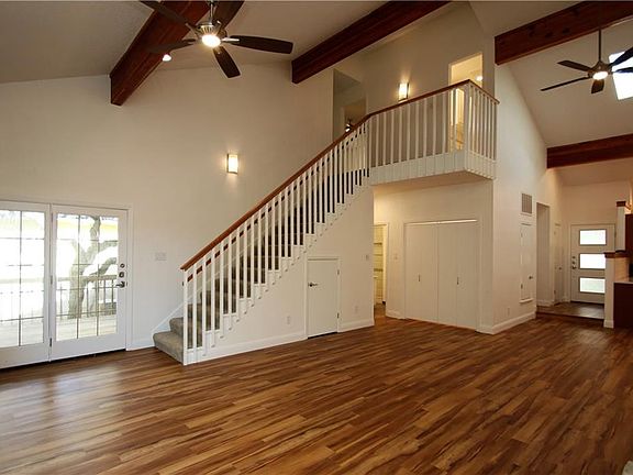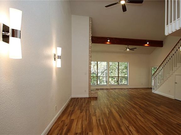 FANTASTIC REHAB of Cat Mountain Duplex! Beautiful, open living area with fully remodeled kitchen. New quartz counters, maple cabinets, farmhouse sink, open to living area with soaring ceilings. New flooring throughout! New WALK-IN SHOWER in master bath with new quartz counter, toilet. MASSIVE STONE FIREPLACE. NEW DECK overlooks GREENBELT, creek and wildlife. Ceiling fans in all bedrooms! HUGE windows! Great schools zoned to Doss, Murchison, Anderson! Yard maintenance included. Attached 2 car garage.