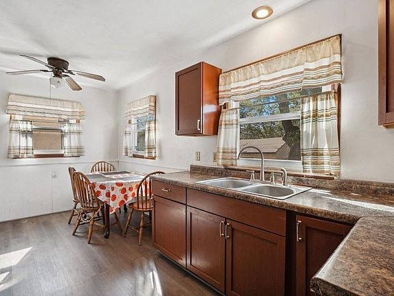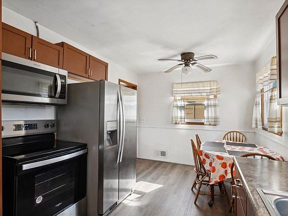 This charming one-and-a-half-story home boasts classic dormers and a welcoming living room with beautiful flooring and updated windows, filling the space with natural light. The kitchen, complete with stainless steel appliances, also offers an informal dining area for easy daily meals. The main level features two comfortable bedrooms, while the upper level provides two additional bedrooms, perfect for extra space or guests. The finished lower level includes a spacious amusement room for entertainment or relaxation. Outdoors, you’ll find a fenced yard, ideal for privacy, along with a deck perfect for hosting gatherings. The oversized two-stall garage offers ample space for parking and storage. This home blends classic charm with modern updates, making it a perfect place to settle in. Newer windows, newer roof, new electrical panel. Fenced rear yard!