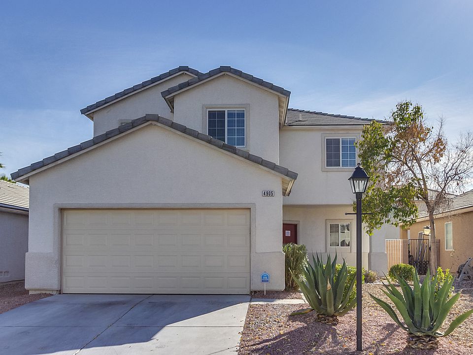What shines at this Las Vegas two-story? Fresh paint, a new dishwasher, and an upstairs loft to boot! Laminate floors grace the living room downstairs, also equipped with built-ins for your entertainment needs. Upstairs, find the Master suite with laminate floors and a full en suite bathroom. A large patio out back is partially covered and awaits lounge chairs and a barbecue. Short drive to Target, WinCo Foods and I-215 access. All Opendoor homes come with a 30-day satisfaction guarantee and one-year premium warranty. Terms and conditions apply. Open House: Mon-Sun, 6am-9pm