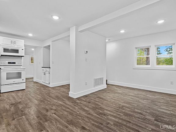 This home underwent an extensive remodel in 2020, including all-new wiring, plumbing, insulation, drywall, flooring, bathrooms, kitchens, windows, furnace & hot water heater. A double roof system was added the same year to help prevent ice damming, and the exterior was repainted in 2021. In 2025, a concrete basement floor and closed-cell spray foam insulation were added—creating a cleaner, more temperature-stable environment that's well-suited for storage. The kitchen includes a brand-new, never-used oven and an updated faucet (not shown in photos). The layout features a main-level bedroom, with laundry conveniently located upstairs. A large hill in the backyard provides natural privacy and adds interest to the lot. While the yard shows some wear in the photos due to a cement truck used during the basement upgrade, it has since been repaired and reseeded. Located just minutes from the Houghton-Hancock Lift Bridge, and close to the ATV/snowmobile trail system, this property offers quick access to the best of the Keweenaw—whether you’re into outdoor adventures or peaceful walks along the Portage Waterway. This is an ideal home for those who value low-maintenance living, a place where you can spend more time enjoying life and less time on upkeep. Note: The trailer home on the adjacent lot is also owned by the seller and will be removed after the current tenant vacates. All furniture in the photos is virtually staged.