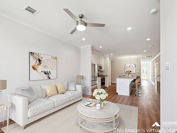 Welcome to The Twilight, a thoughtfully designed townhome by Alvarez Construction, where modern style meets low-maintenance living. This three-bedroom layout offers a smart, efficient design ideal for today’s lifestyle, with floor plan options for both exterior and interior units. Exterior units feature three bedrooms, a full-sized utility room, and an open-concept kitchen with electric appliances and a large island that seamlessly connects to the living and dining areas. The luxurious owner’s suite offers a private retreat complete with a soaking tub, walk-in shower, double vanities, and a linen closet. Interior units are two-story, with the owner’s bedroom, a secondary bedroom, and a full bathroom located on the main floor, while the third bedroom and bathroom are upstairs. These homes also include a full-sized utility room and an open-concept kitchen with electric appliances and a spacious island, perfectly integrated with the living and dining spaces. Each Twilight townhome includes durable vinyl flooring in common areas, tile in wet zones, and elegant granite countertops throughout. A rear-loading garage adds convenience and enhances the home’s curb appeal. Experience the ease of townhome living with the quality craftsmanship, energy-efficient features, and timeless design that define Alvarez Construction. The Twilight offers a perfect balance of style, comfort, and functionality — making it the ideal choice for modern living. Included upgrades: 3cm granite countertops throughout, vinyl flooring in all common areas, cabinets to ceiling in the kitchen, kitchen trash can pull out drawer with 2 bins, over-commode cabinets in both bathrooms. Owner is Louisiana Licensed Real Estate Agent.