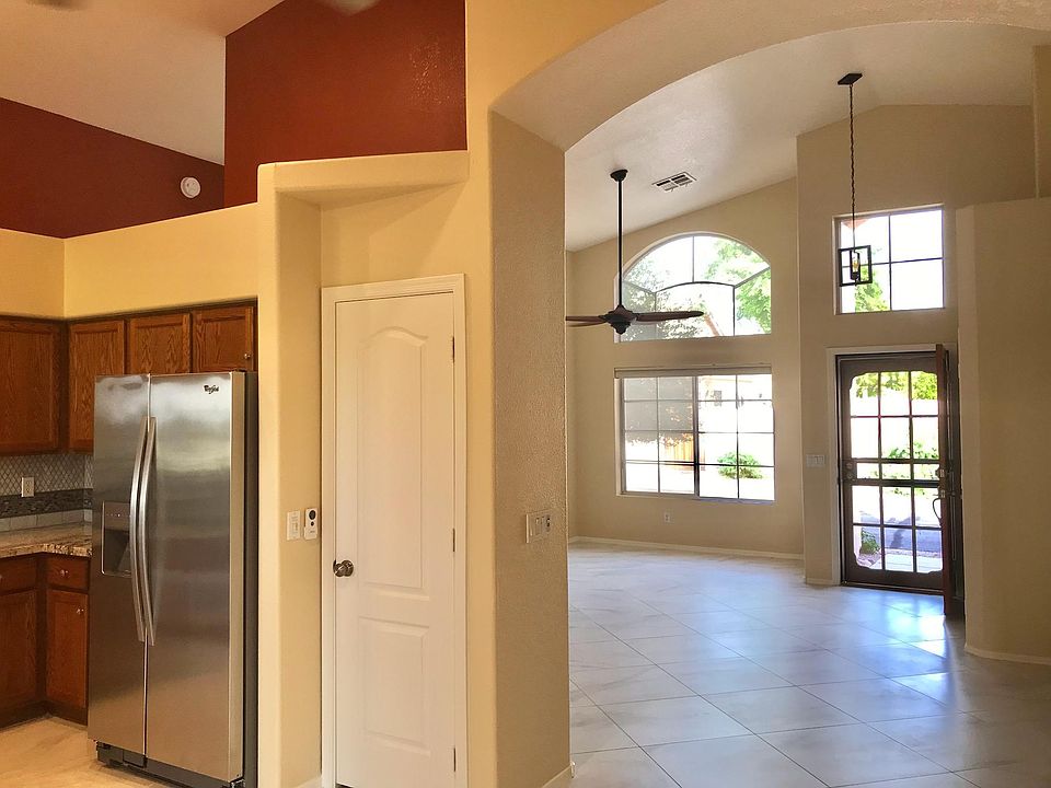 One Great Home! Look through home from front door to rear slider, out to covered back patio oasis, and a well maintained city park. Great room split bedroom floor plan with large windows, plant shelves and vaults throughout. Granite, stainless appliances, pantry and view of park from kitchen sink. Large master suite with ample room for office, bath with glass block, duel sinks and walk in closet. 3rd bedroom has walk in closet and view of park. Great location close to shopping, restaurants, golf, theater, Saguaro Lake, river rafting, hiking, bike trails, and the 202. Non smokers please.