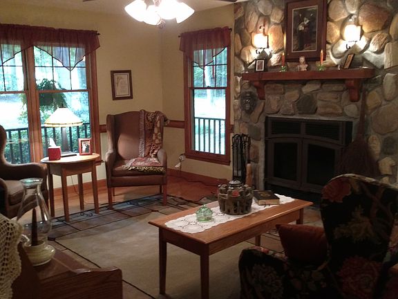 A Great Home for a Family. Built with a family in mind this Country Farm Style home has a wrap around porch and screened porch. Home is located on a wooded lot with great privacy. Set back from road approx. 170 feet. There is a new roof; new well pump system (20+ gpm), Cedar Wood siding - recently re-stained; trim painted. Rooms recently painted and some amenities i.e. 2 step chair rails, wainscoting, all "clear" wood - stained trims, all raised panel solid wood doors. Bathrooms w/ ceramic tile flooring and Kitchen with recent up-fits. Hardwoods floors through out main level, carpets in bedroom level. There is a craft / media room on the bedroom level. 2 heat producing fireplaces (main level living room and lower level family room) Cable ready; Central Vacuum . Home constructed with freedom of design i.e. engineered floor truss systems for all levels with most interior walls being capable of modification for those who wish their own signature.