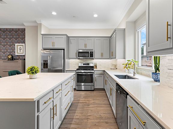 The main living level is bright and open, with large windows and updated finishes throughout. The kitchen is a true centerpiece, boasting an oversized island with bar seating, a wine fridge, walk-in pantry, and sleek, on-trend design. Hardwood floors, crown molding, custom blinds and generous natural light elevate the space. HVAC compressor, coil and heater all '24!