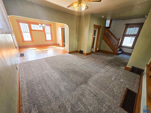 This charming 3+ bedroom, 2 bathroom home combines timeless character with modern updates. Step inside to find an inviting open living and dining area, highlighted by original woodwork and solid doors. The kitchen features updated vinyl flooring, a tile backsplash, stainless stove, dishwasher, and a nice pantry cabinet. The primary bedroom offers an extra sitting area, perfect for a reading nook or home office, while the other two bedrooms are nicely sized. The full bathroom has been updated. Enjoy outdoor living with a cozy front porch, enclosed back porch, and a large fenced backyard with patio. Additional features include a new air conditioner, newer water heater, and a large two stall garage.