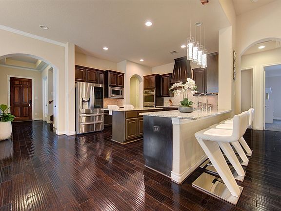 Walls of windowsDining and living spacesCovered back patioSoaring ceilingsDual closetsGourmet kitchenSpa-style bath