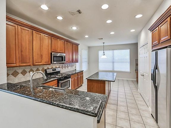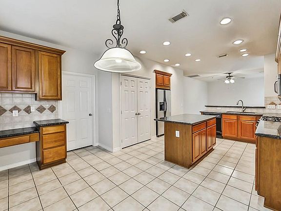 Cinco Ranch home in park-like setting! Beautiful cul de sac home located next to wonderful neighborhood park. Crown molding in formals, comfortable den with a gas log fireplace and wood floors. Island kitchen features tile floors granite countertops, household desk and more! HUGE master bedroom includes big walk-in closet, dual vanities, whirlpool tub and separate shower! Big gameroom up. Backyard sanctuary has a covered patio with ceiling fan. Come and see it before its gone!