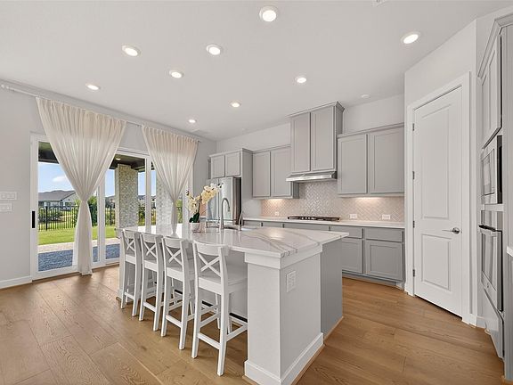 *No Back Neighbor, Premium lot* Experience upscale living in this beautifully maintained like-new house by Darling Homes, featuring the sought-after open-concept floor plan. Designed to impress, the residence boasts a charming entry that sets the tone for the elegant interior. Inside, you'll find an open-concept layout seamlessly connecting the gourmet kitchen, spacious family room, and casual dining area perfect for both everyday living and entertaining. The kitchen features ample cabinet space, generous prep areas, and opens to a covered patio, ideal for al fresco dining. The primary suite offers a spacious retreat with abundant space. A secondary suite is conveniently located on the first floor, ideal for guests or multi-generational living. Upstairs, enjoy a thoughtfully designed entertainment space complete with a game room, media room, and two additional bedrooms, each with its own full bathroom. Washer, dryer, and refrigerator are included.