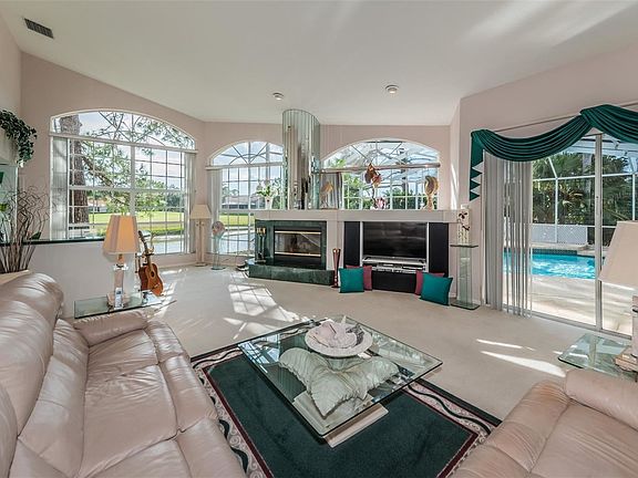 Brand New Tile Roof Fall 2021. Enjoy panoramic views of the Golf Course and Turtle Creek from almost every room. Fantastic 5 bedroom 3 bath home with air conditioned 3 car garage. Former model home is light and bright with expansive windows in the gathering room. Grand entrance with double doors, marble tile and a mirrored ceiling. Enjoy entertaining in the formal living and dining rooms or casually outside on the spacious lanai with outdoor kitchen, pool and spa. Gourmet kitchen with breakfast area has marble counters, large pantry and a center island. Huge gathering room includes a fireplace, wet bar and sliders to the patio. Master bedroom is a retreat with sitting area, views of the golf course, access to the patio and walk in closet. Eastlake Woodlands is a guard gated, golf and tennis community with two renowned golf courses and clubhouse. Membership is required to enjoy golf, tennis, swimming, child activity center and gym. Eastlake Woodlands is central to all dining, shopping and highly rated schools. A short drive will take you to all area beaches, activities and the Tampa International Airport.