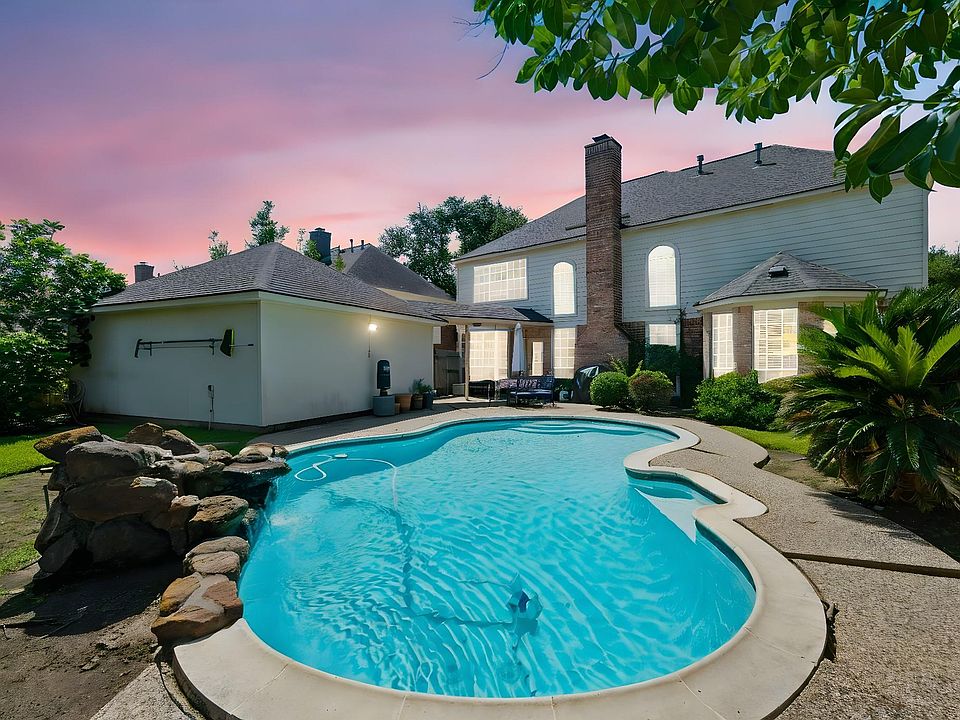 Charming two-story home in a highly sought-after neighborhood. This lovely four-bedroom, three-and-a-half-bath residence features a formal dining room, a study, and a game room. The downstairs area boasts high ceilings, recessed lighting, and crown molding throughout. The master bedroom includes a cozy sitting area with a beautiful view of the sparkling pool. Additionally, you'll find attractive built-ins in both the study and game room, along with gorgeous hardwood floors in the living area. The home also includes a sprinkler system and a water softener for added convenience.
