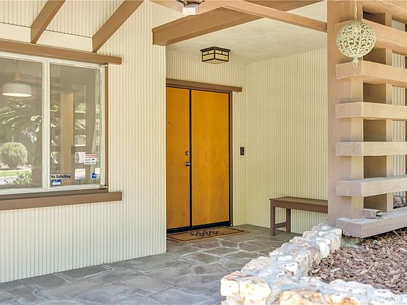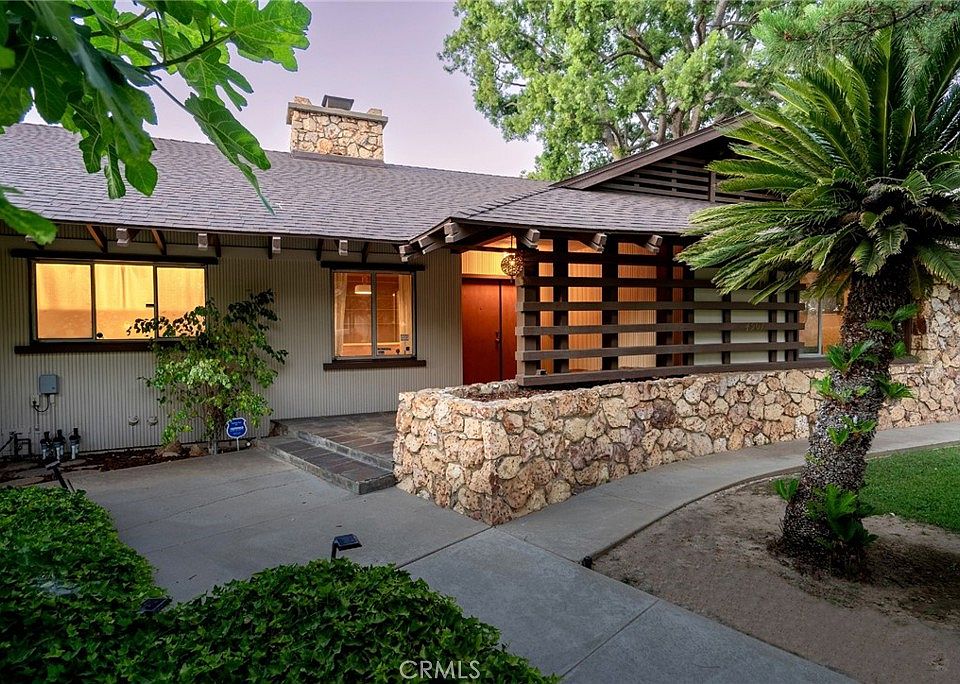 Adjacent to the Wood Streets and nestled on a serene hillside, this exquisite mid-century modern home with 3 bedrooms, an office, 3 bathrooms, and over 2,800 sq ft, offers a perfect blend of sophistication and comfort. The exterior design is complemented by the expansive floor-to-ceiling windows, which not only flood the interior with natural light but also provide breathtaking panoramic views of nearby Mount Rubidoux and distant snow-capped peaks during winter. The open-concept living space seamlessly integrates the indoors with the outdoors. The living room features a floating concrete hearth with gas and wood-burning fireplace, and period lighting. The central air/heat provides incredible comfort, and the vintage kitchen boasts updated countertops and ample cabinetry. The bedrooms are large; two with en-suite bathrooms, and one with incredible views. Storage is abundant throughout the home, with numerous built-in cabinets, closets, and shelving that preserve the home's mid-century character while providing practical solutions for modern living. A dedicated laundry room with additional storage ensures that household chores are managed with ease. Step outside to the backyard retreat, where a sparkling pool serves as the centerpiece, surrounded by a covered patio ideal for lounging and alfresco dining. The landscaped garden with fruit trees enhances the sense of tranquility, while the unobstructed views create a picturesque backdrop. The fenced lot extends down the low-maintenance hillside, filled with wild grapes and shade for wildlife. Every detail of this mid-century modern home has been thoughtfully designed to offer a harmonious living experience in one of Riverside's most coveted neighborhoods.