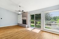 Wood-burning fireplaceDining areaWell-sized kitchenMature treesOpen-concept layoutSecondary bedroom