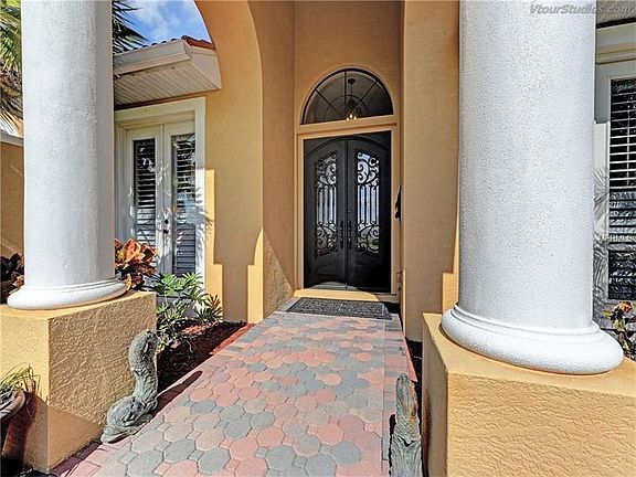 This Mediterranean style pool home will take your breath away! The amazing floorplan boasts 4 beds, 3 baths, office, chef's kitchen, family room with formal living & dining rooms. The elegant entry welcomes you through one of a kind wrought iron double doors to the spectacular interior including slate floors, a gourmet kitchen w/ light cherry cabinets, stone counters, a "Gaggenau" cook-top w/ dual vents, grill & deep fryer, 2 sinks, s/s appliances, dual ovens with a separate warming drawer and a breakfast nook. Perfect details like crown moldings, 2 master built-in closets, 1-coffered & 3-trey ceilings, 8??? french doors, multi room sound system, plantation shutters throughout, 3 pantries for extra storage and so much more! The large lanai area features an over-sized, heated pool w/ newer no-see-um cage, newer pebble-tec surface, a SunSetter awning, tons of pavers and a large covered sitting area. The private, premium, cul-de-sac 1 acre lot has an amazing lake view and privacy galore. The exterior also includes a barrel tile roof, pavered drive and entrance, generator w/ sep. electric panel for essentials ??? just in case. Tropical landscaping, irrigation system, porte-cochere w/ plenty of room for an outbuilding not that you probably need it because there are 2 garages with room for a workshop and your toys! All of the furnishings are negotiable as well. Foxbrook is great for walking, biking, or riding! All of this just a few miles from the Ellenton Outlet Mall, UTC Mall and our world famous Gulf beaches.