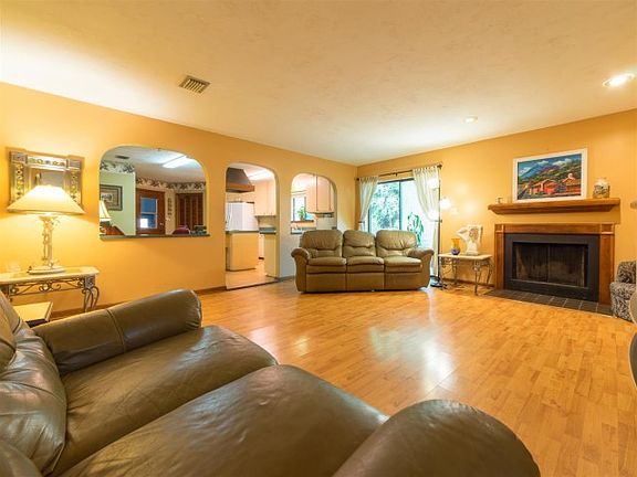 Beautiful Oaks Greet you to great classic home! This 3BR/2BA on .4 acres has large eat in kitchen with arches that open to living room with fireplace. Separate Dining room for more formal dining. Master is big 14x14 with walk in closet and large master bath with double vanities, separate tub and toilet room. Bedrooms 2 and 3 are nice 10x12 separated by another big full bath. All floors laminate wood or tile. Living room glass doors open onto deck, great for entertaining in big fenced yard with more great oaks! Great for young family to grow, first time home buyers. NEW ROOF and NEW HVAC!