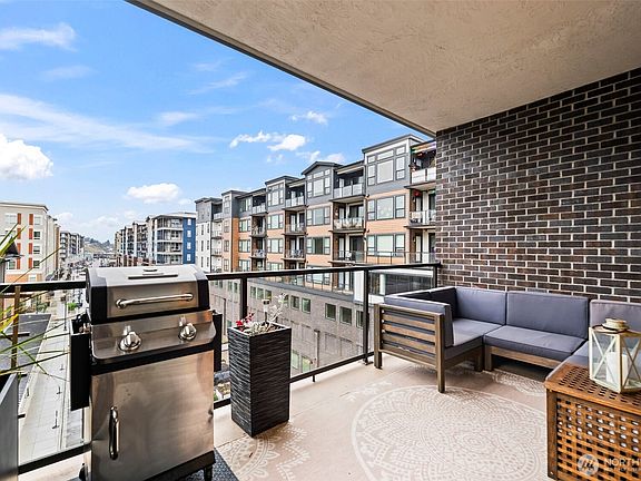 Experience the Point Ruston lifestyle from this exceptional condo in the coveted Rainier Building. Featuring an open layout w/ 9' coffered ceilings, wide-plank flooring, motorized blinds, living room w/ cozy fireplace flowing seamlessly into chefs kitchen w/ white cabinets, SS Bosch appliances, quartz counters & separate dining- perfect space to entertain. Serene primary suite w/ walk-in closet, spa-quality bath w/ heated tile floors. Laundry w/ sink- w&d included. TWO covered decks to relax from showcasing city lights, cascades & sunsets. Includes 2 reserved parking spaces (1 is EV) & a storage unit. Enjoy unmatched accessibility to shopping, dining, entertainment, trails, bike/kayak storage & more! LID is paid. Tax abatement through 2030.