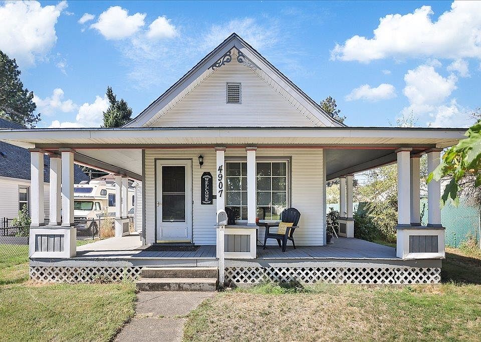 This charming two-bedroom, one-bathroom home is brimming with potential and waiting for your personal touch! You’ll love the inviting wrap-around front porch, that offers the perfect spot for your morning coffee. Step inside to a spacious family room featuring wood flooring and cozy wood-burning stove, perfect for relaxation. The generously sized kitchen offers wood cabinets, a convenient eating space, and pantry. Enjoy the ease of main floor living with a primary bedroom with double closet, full bathroom, and laundry area. A partial, unfinished basement with non-egress bedroom provides opportunity office or recreation space and plenty of storage. Outside, you’ll find a fully fenced backyard with a detached two-car garage and alley access. Conveniently located with easy access to dining and shopping, this is a must-see for anyone looking for a home with character and endless possibilities!