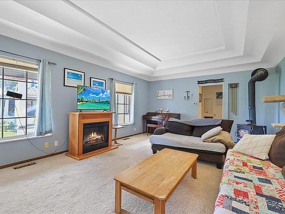 Cozy wood-burning stoveGenerously sized kitchenLaundry areaDetached two-car garageWood flooringAlley accessSpacious family room