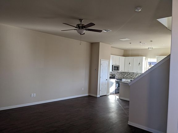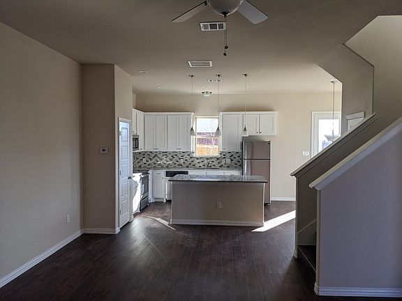 Beautiful duplex featuring 10-ft ceilings, open floor plan, and 2-car garage. Kitchen includes granite countertops, stainless steel appliances (refrigerator included), and washer/dryer hookups. Designer lighting and faucets, plank flooring throughout. Fenced backyard with covered patio. Conveniently located near the high school, Lake Ray Roberts, and I-35.