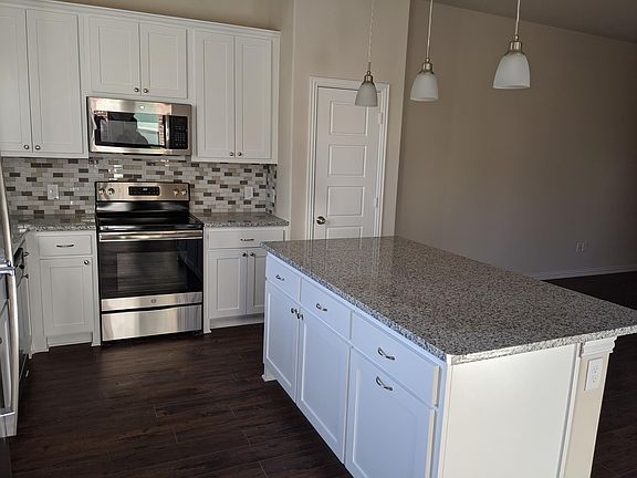 Open floor planStainless steel appliancesPlank flooringGranite countertopsCovered patioFenced backyard