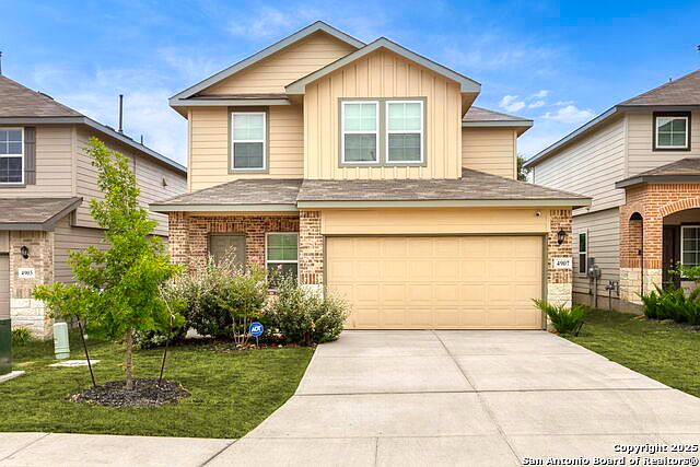 Welcome to a stunning two-story residence that perfectly blends style, comfort, and convenience. This spacious home, boasting 4 bedrooms and 2.5 baths, is designed for modern living with an open concept floor plan that seamlessly connects the kitchen, dining, and family rooms. As you step through the inviting entry foyer, you'll immediately notice the thoughtful layout that includes a convenient powder bath for guests. The heart of this home is undoubtedly the gourmet kitchen. Equipped with sleek stainless steel appliances, elegant granite countertops, and a functional kitchen island, it offers both beauty and practicality. The island overlooks a cozy family room, creating an ideal setting for entertaining or enjoying family time. Retreat to the tranquility of the downstairs primary bedroom, featuring an attractive ensuite with a separate water closet, granite vanity countertop, and an expansive walk-in closet. This private haven provides a perfect escape at the end of the day. Upstairs, you'll find all secondary bedrooms, thoughtfully situated to provide privacy and comfort for family members or guests. A spacious game room adds versatility to this level, offering endless possibilities for recreation or relaxation. Step outside to discover a rear covered patio directly off the family room - a perfect spot for outdoor dining or simply unwinding while appreciating your landscaped yard equipped with irrigation. Additional highlights include sheet vinyl flooring in key areas such as the entry, living room, and all wet areas, as well as granite countertops in all bathrooms. With a 2-car garage completing this inviting package, this home is ready to welcome you into an unparalleled lifestyle.