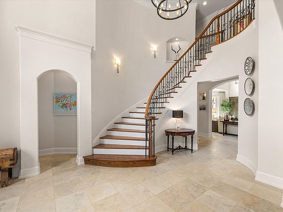 This stunning home in the desirable gated Westbriar neighborhood at Overton Woods has been completely remodeled to combine luxury, comfort and timeless design. The open concept main level connects the kitchen, living, dining and keeping room, perfect for entertaining. Vaulted wood beamed ceilings, fireplaces, and custom draperies throughout add sophistication and warmth. A wet bar links the kitchen and dining area for seamless gatherings, while a powder bath provides added convenience. The chef's kitchen features a Wolf cooktop, double ovens, two warming drawers, Sub-Zero refrigerator, wine refrigerator and two additional refrigerator drawers. A versatile office-game-mahjong room with built in wood shelving, fireplace, and views of the courtyard and pool. The main floor primary suite is a private retreat with new carpet, serene courtyard and pool views, and a retractable screened porch. The spa inspired bath includes heated floors, dual closets, and luxurious finishes. An additional main floor en-suite bedroom offers comfort for guests. Upstairs, an oversized en-suite bedroom features new carpet, fresh paint and a remodeled bath. A second en-suite bedroom includes a remodeled bath and an adjoining bonus room perfect for TV lounge or craft room. The elevator provides convenient access to the lower level, which includes a space ideal for a workout room and direct entry to the two car garage and the separate one car garage. The outdoor living boasts a private courtyard with new decking and tile on the pool and hot tub, fire pots, tranquil water features, and a built-in gas grill. Two screened porches with retractable panels one off the keeping room and one off the primary suite provide additional spaces for relaxing and entertaining. Additional features new Generac generator.