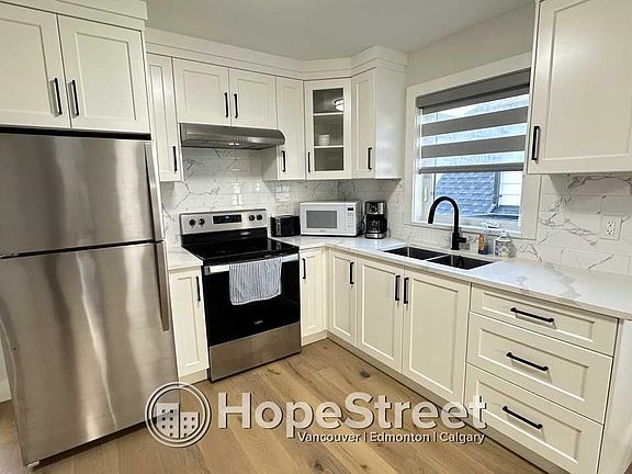 Stylish and private coach house with separate entry. Features open-concept living with hardwood floors, bright kitchen with shaker cabinets, quartz counters, and stainless steel appliances. Cozy bedroom with full closet, 3-piece bath, in-suite laundry, and energy-efficient heating. Water included, plus private paved driveway. Fantastic location just steps to Ladner Village shops, cafes, dining, and services, with easy access to transit and Hwy 17. Perfect for singles, couples, or professionals seeking a modern, private space in a prime Delta location.