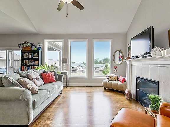 **Contact Christina Moreno at 913-680-7045 for all the details or to schedule a private viewing** Absolute perfection in this maintenance-free, turn-key Reverse 1.5 Story home in Hollingsworth Estates! This stunning 3 bed/3 bath features an open concept design, abundant natural light throughout, main level living, and is exceptionally well-maintained! The main level features hardwoods, entry, living room with fireplace, dining area, kitchen with pantry and granite, laundry, and master bedroom with plantation shutters and an amazing master bathroom with whirlpool tub, separate shower, dual sinks, and walk-in closet. Covered deck with solar shades, perfect for sipping your favorite beverage. The downstairs lower level is a walkout and has a family room, two bedrooms with plantation shutters, a full bath, and plenty of storage. Enjoy the benefits of lawn care and a great neighborhood! Close to 7 hwy, I-70, KC Legends, within walking distance to the pristine Falcon Lakes golf course, and in the Basehor-Linwood school district!