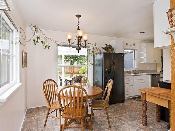 Light & bright describes this wonderful 3 bed hm! Updated kitchen w/newer appliances. Newer carpets freshly cleaned throughout living areas. Formal liv rm. Built in cupboards for extra storage. Tiled floor & tub enclosure in updated bath. Large dining area off kitchen. Sweet patio (some covered) for those lovely summer nites. Huge fully fenced yrd (front & back) w/fruit trees & garden. Shed for storage or projects. Off street prking. Easy access to shopping & freeways.