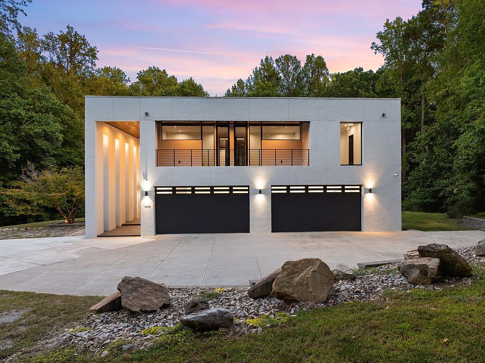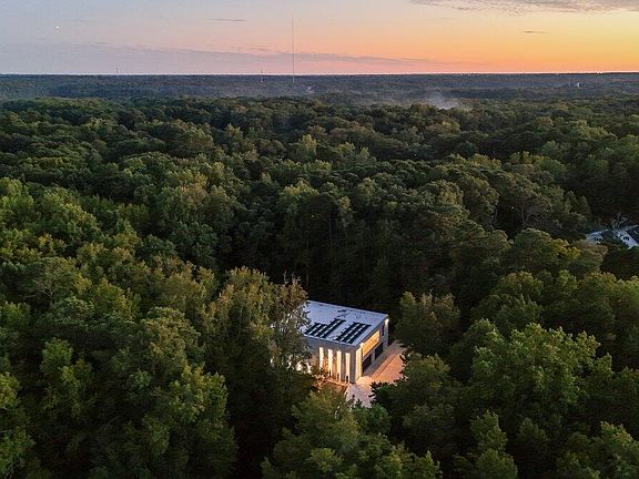 Modern luxury on nearly 4 acres just 8 minutes to Downtown Raleigh and 5 minutes to Cary, located right next to scenic Lake Wheeler. Built of structural steel and concrete with hurricane rated design, this one of a kind residence is unlike anything else in North Carolina. Offering over 5400 sq ft, the home features 4 bedrooms and 6.5 bathrooms, including two master suites, two full kitchens, and two laundry rooms. The open layout showcases soaring 12 ft ceilings, walls of glass, and polished concrete floors that flow seamlessly to the heated pool and expansive deck. A private in law suite with its own kitchen and laundry provides flexibility for guests or multi generational living. 70 new trees have been planted across the property that will mature into a natural privacy screen, enhancing the already serene setting. Every detail was designed for beauty and performance including custom birch doors, floating stairs, European inspired baths, and commercial grade systems throughout. A 1500 sq ft garage accommodates up to 6 cars with EV outlets, polished floors, and commercial finishes. The home is highly energy efficient with 15kW solar, advanced insulation, 7 zone HVAC, and average utility bills of just $85 per month. Smart home technology, whole home audio, a media room, and rooftop access complete this extraordinary modern estate. This is a rare opportunity to own a property without comparison in North Carolina. Schedule your private showing today.