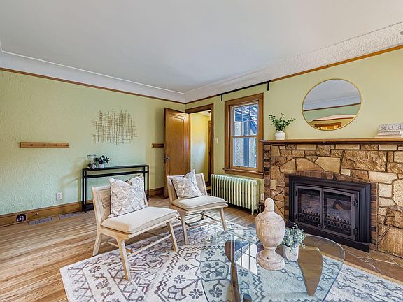 This charming Minneapolis Tudor lives large boasting over 2500 FSF above ground! It sits just one block off the parkway on a welcoming street in the desirable Field neighborhood! Available for the first time in 54 years, this five-bedroom two-bath home blends timeless character with thoughtfully added spaces. Enjoy original hardwood floors, coved ceilings, rich woodwork, and sun-lit windows throughout. The inviting living room features a gas fireplace and opens to the dining room with wood crafted built-ins and buffet. A spacious kitchen with informal dining area and adjoining family room with wood burning stove offer perfect gathering spaces. You will love morning coffee time on the enclosed back porch! Two main level bedrooms offer options for an office, den area or playroom. The custom Murphy bed in the front bedroom makes a great guest bedroom! Upstairs you will find three bedrooms including a primary with two generous closets. There is also a versatile "bonus" room off the large upstairs hallway.