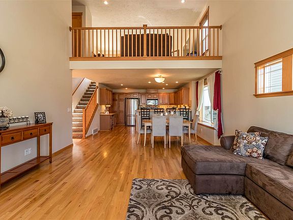 Sought after 1 ½ story featuring upgrades galore! Beautiful hardwood floors, expansive great room w/ cathedral ceilings, & fresh interior paint. Cozy 2nd story loft family room w/ gas FP. Kitchen features SS appliances, ample cupboards & counter space, tile back-splash, roll-out drawers, pantry, built-in desk, & eating bar. Easy maintenance vinyl siding, deck, 3+ car garage (tandem), terraced boulder retaining walls & vinyl fencing. Gas heat/cent A/C, solid wood doors & custom trim package thru-out. HURRY!