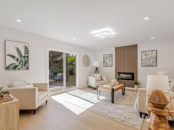 This beautifully renovated home blends timeless elegance with modern comfort. Built with solid craftsmanship, it is situated on a quiet, non-drive through street, offering both tranquility and convenience. An inviting living room welcomes you, leading to 4 spacious bedrooms and 2 full bathrooms. The separate family room, accented by a stylish electric fireplace and a decorative wall, creates an ideal setting for cozy gatherings. At the heart of the home, the fully upgraded kitchen boasts sleek modern cabinetry, quartz countertops, SS appliances, and a skylight that floods the space with natural light. The tastefully renovated bathrooms showcase elegant floating dual-sink vanities, contemporary lighting and water-efficient fixtures. Central AC & heating ensures year-round comfort. Meticulously maintained landscaping creates a serene, private outdoor oasis. Additional highlights include his and her closets in the primary bedroom, durable metal tile roof, dual-pane windows throughout, 200amp electrical panel, and a paid-off solar panel system for enhanced energy efficiency. HVAC, electrical and plumbing in good condition. Easy access to highways, shopping, dining, parks and more. This sophisticated home, with its exceptional character and solid bones, is a rare gem. Don't miss it!