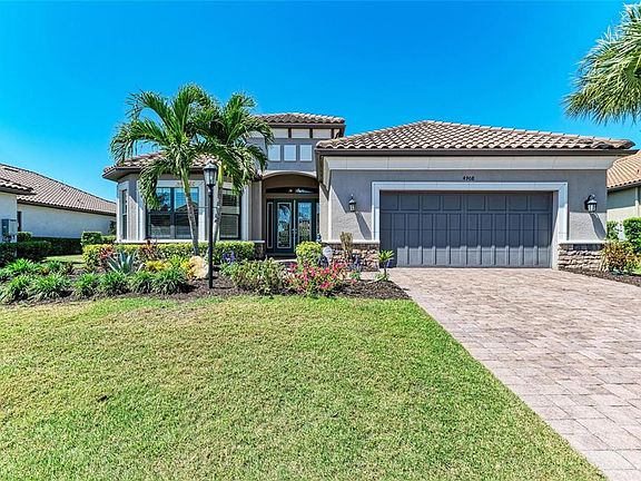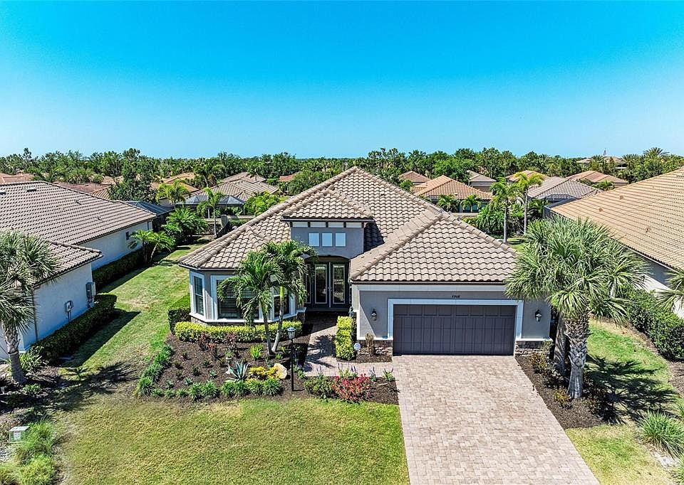 Backyard serenity meets luxury, functionality and comfort in this coveted Pallazio floor plan with a stunning koi pond and lush garden as the backdrop to this beautifully appointed 3-bedroom, 3-bathroom home with a den, spanning 3,090 sq. ft. Double beveled glass doors welcome you into a spacious foyer and open-concept living area where high ceilings and expansive sight lines lead to double pocket sliders to the lanai. Thoughtful architectural details include double tray ceilings, crown molding, plantation shutters, and luxury vinyl plank flooring throughout the main living areas and primary suite. The stylish designer kitchen is a chef’s dream, featuring a large quartz island with pendant lighting, loads of cabinetry, GE stainless appliances, gas cook top with vent hood, built-in oven and microwave, wine chiller, French door refrigerator with Keurig K-Cup, a generous pantry and breakfast nook. The expansive primary suite is drenched with natural light and views of the koi pond and garden. The spacious spa-inspired en-suite bath boasts double entry shower with dual shower heads, large vanity with double sinks, private water closet and a custom walk-in closet. The den offers a warm, inviting space for work, hobbies or quiet retreat. The two spacious guest bedrooms, one with its own en-suite bath ensure privacy for family and guests. Step outside to the lanai, where a summer kitchen with peninsula bar seating and large hot tub/spa await. Enjoy the soothing sounds of a custom waterfall koi pond with an automatic fish feeder surrounded by a beautifully landscaped garden and wrought iron fencing. Additional features include well equipped laundry room, surround sound system, central vac, tankless gas water heater and Kohler whole house generator. Golf membership included in the HOA fee and access to Esplanade G&CC 18-hole championship course and world-class signature resort-style amenities, culinary center, a variety of dining options, full-time social director, numerous activities and events, bocce ball courts, pickle ball courts, tennis, spa and wellness programs, fitness center, resort pool, nature paths, playground and dog park. An exceptional home blending luxury, functionality, and comfort in a vibrant resort-style community.